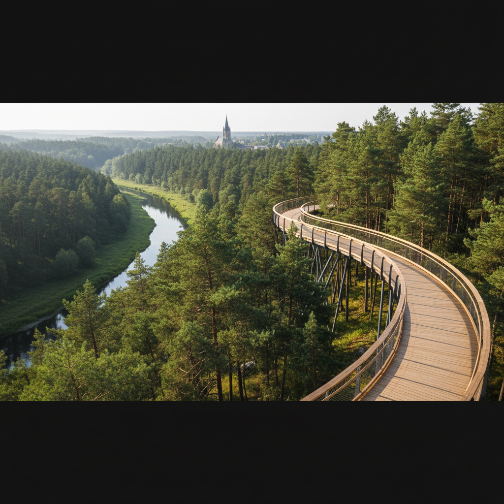 Tako ilgis siekia 300 metrų, o aukščiausias jo taškas – apžvalgos bokštas – kyla į 21 metro aukštį. Užlipus į viršų, atsiveria kerintis vaizdas į Šventosios upės vingius bei tolumoje stūksantį Šv. Mato bažnyčios bokštą. Tai vieta, kurioje gamta ir moderni architektūra susilieja į darnią visumą. Patariame čia atvykti anksti ryte, kai miškas dar skendi rasoje, o lankytojų srautai nėra tokie dideli – patirtis bus kur kas intymesnė ir magiškesnė.